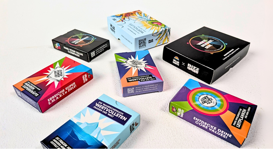 Valueneers Spiele sind mehr als "einfache Karten". Sie geben dir Klarheit, Sicherheit, Freiheit und Verbindung als Essenz in einer kleinen Schachtel. Entwickelt von Experten, um spielerisch leicht tiefe Veränderungen zu bringen.