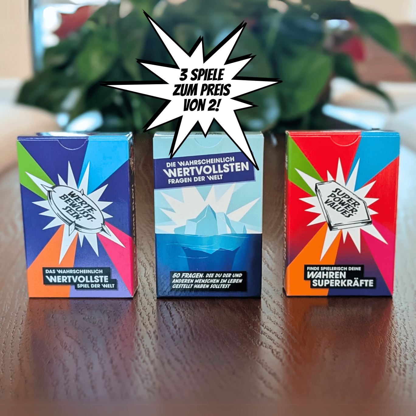 Leicht. Ehrlich. Wirksam: Drei Spiele, drei Perspektiven – Werte, Fragen, Superkräfte. Du lernst dich kennen, ohne dich zu verlieren.