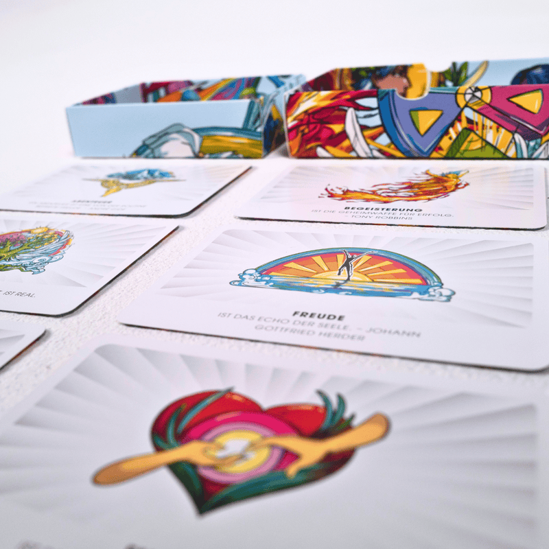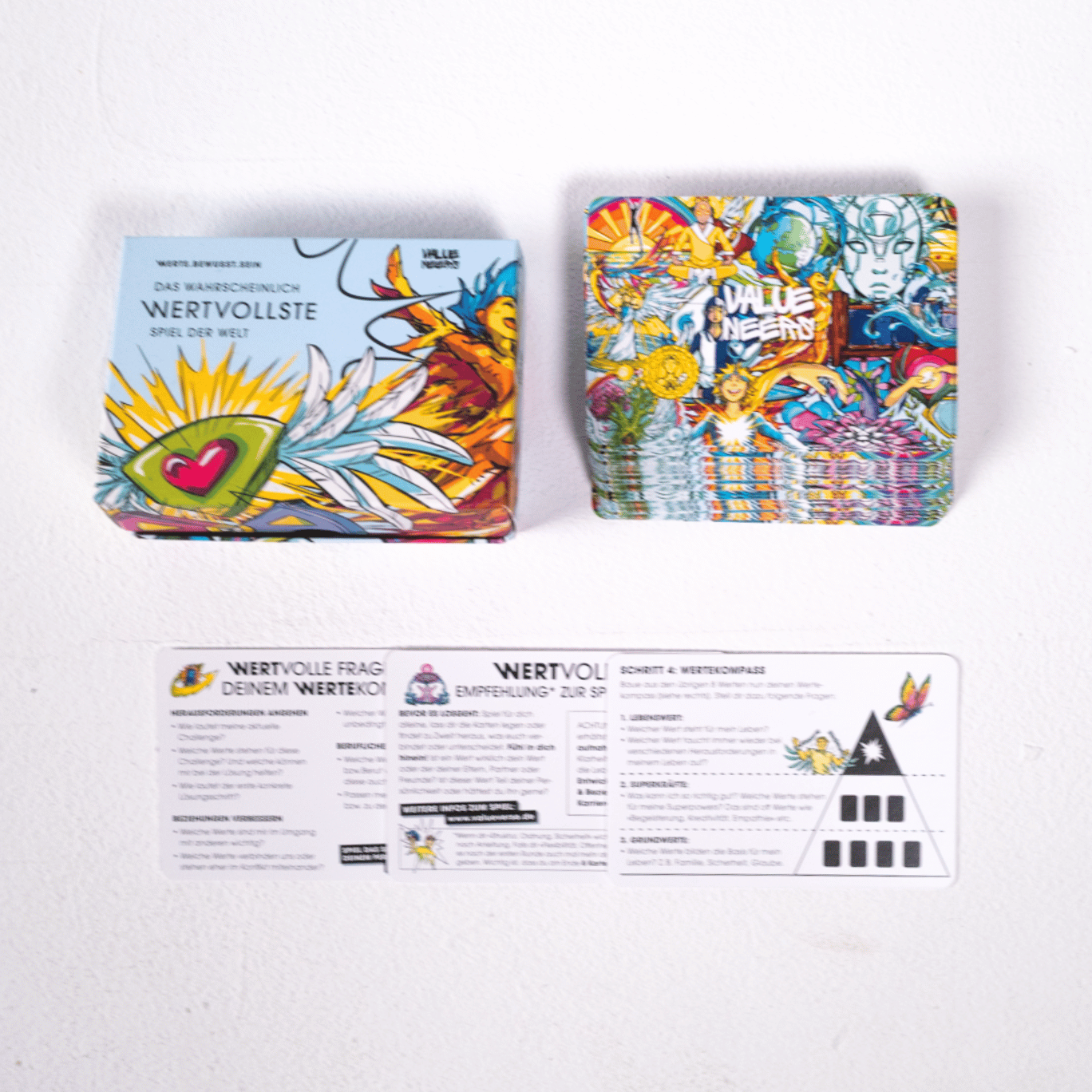 Egal ob du das Spiel allein, mit Freunden oder in deiner Arbeit mit Menschen nutzt – es wird Gespräche auslösen, die du nie vergessen wirst.