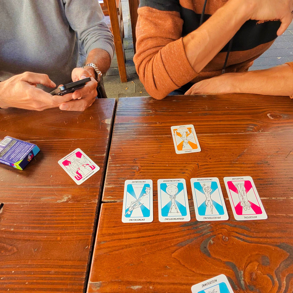 Jede:r spielt mit einem eigenen Kartenset und sortiert Schritt für Schritt, welche Werte am wichtigsten sind. Am Ende entsteht ein persönlicher Werte-Kompass: das individuelle Fundament jeder weiteren Arbeit.